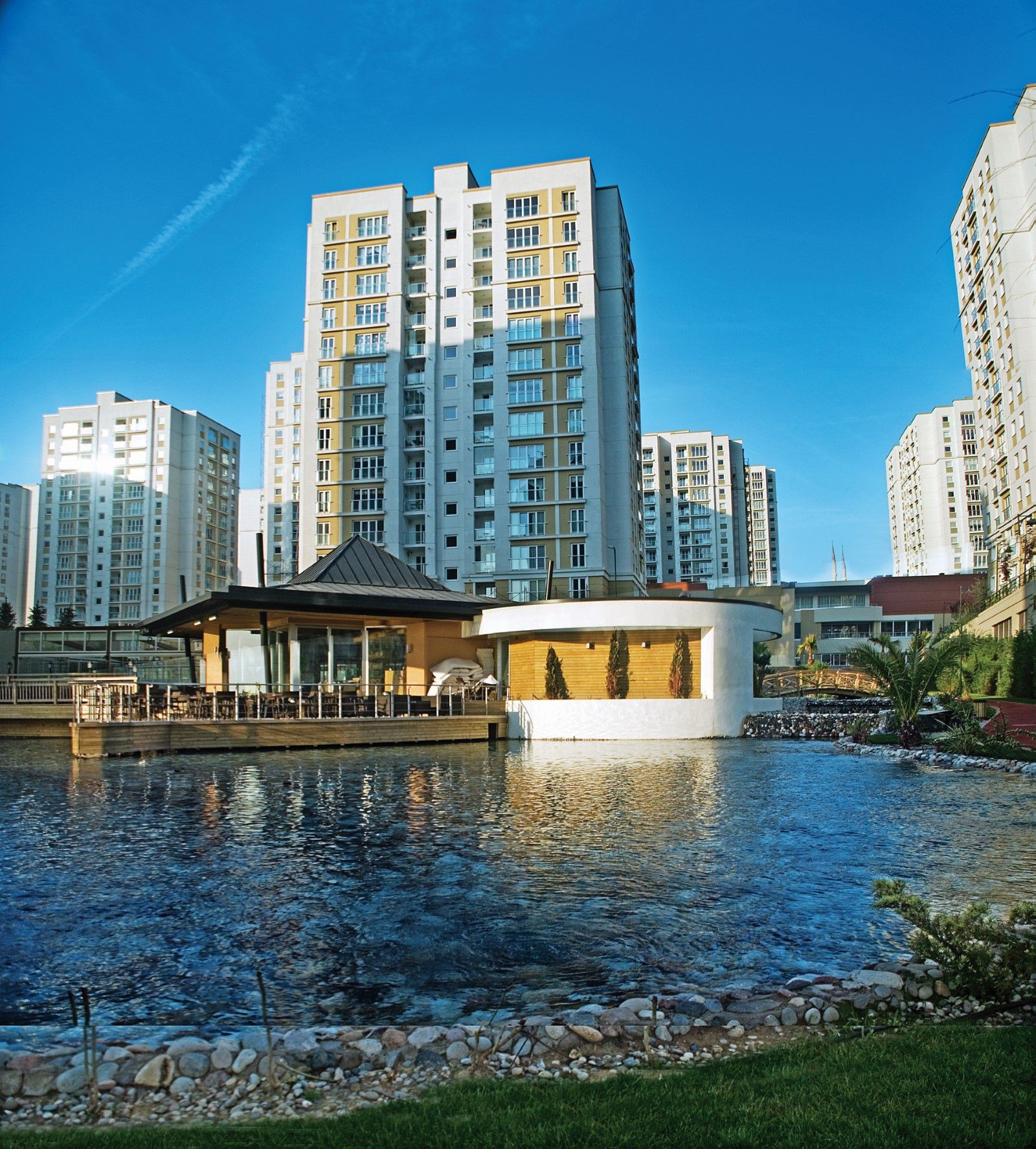 In this project which will be performed on a total 144.133 m² area, 85% of the overall housing estate area has been designated for common use and green. This project, rising at the center of İstanbul, displays its difference with the waterfall, artificial pond, lake cafe within the housing estate besides its forest and dam scenery.