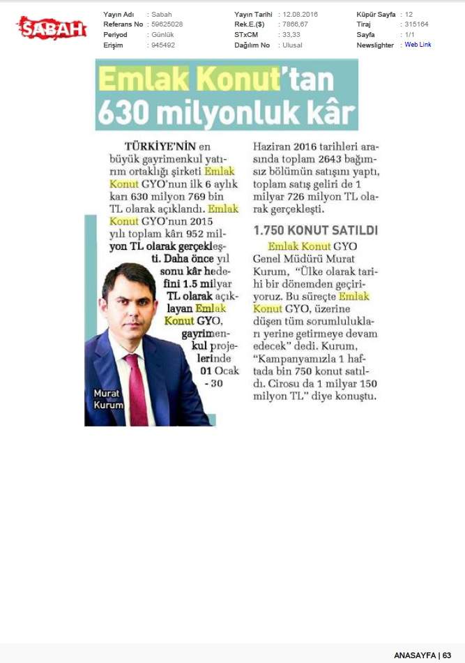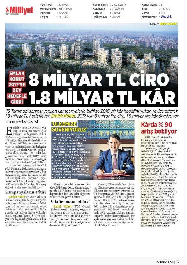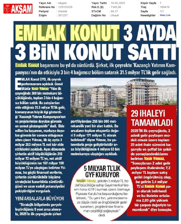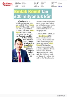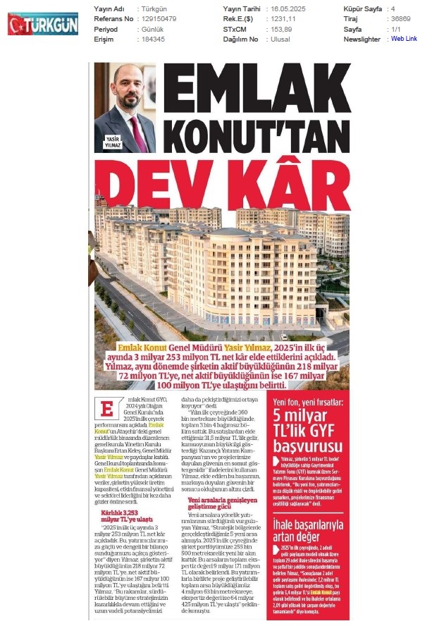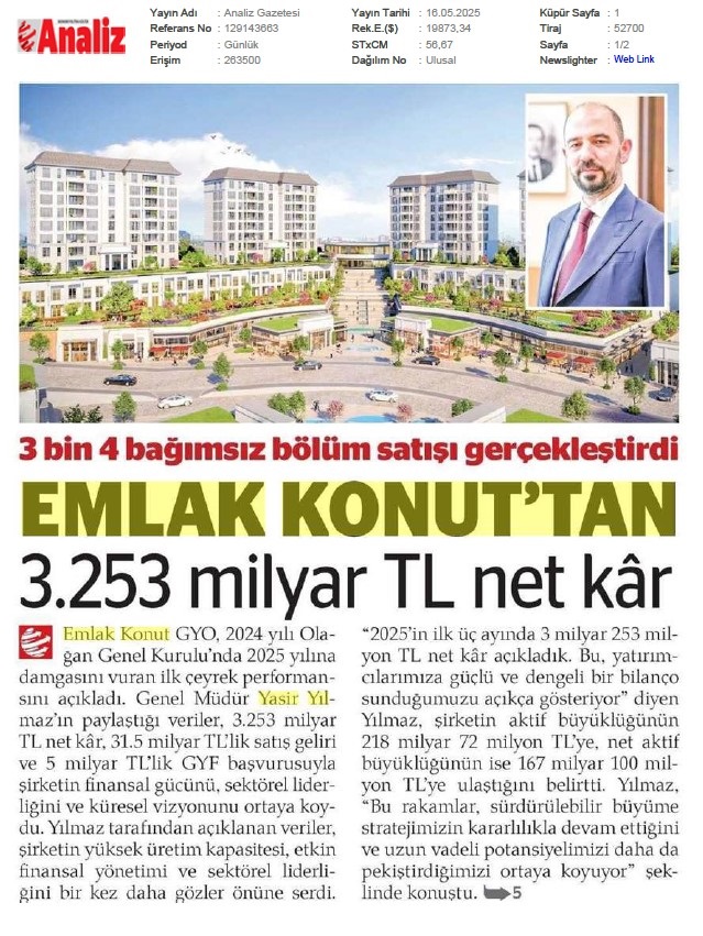 Emlak Konut'tan 3.253 milyar TL net kar