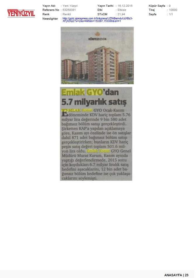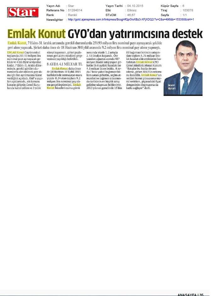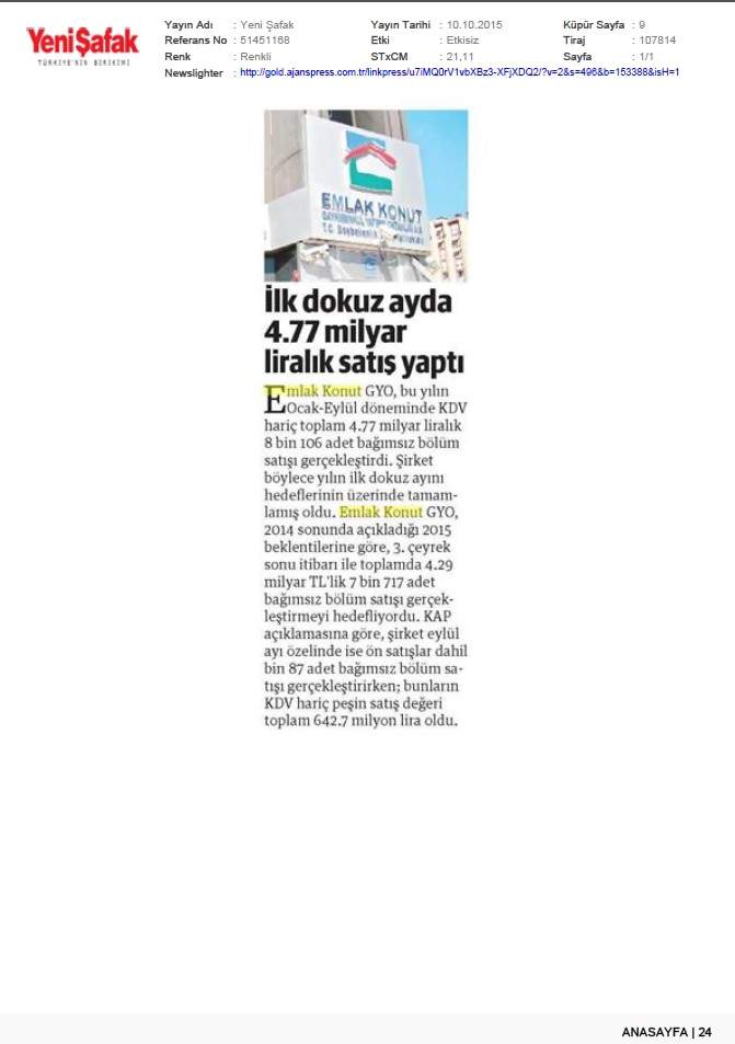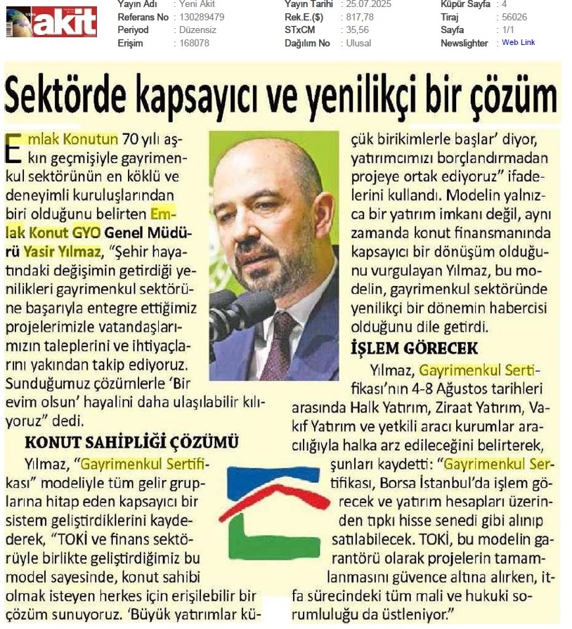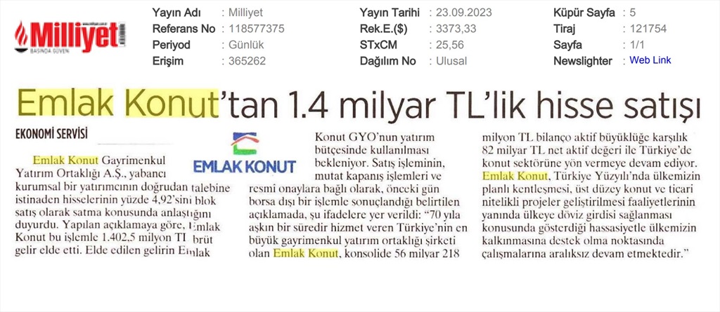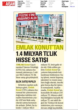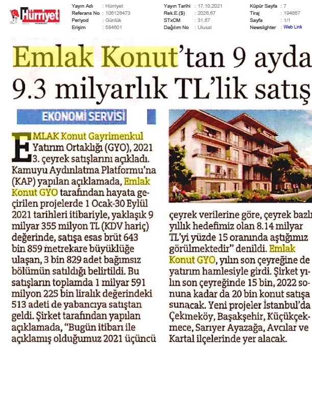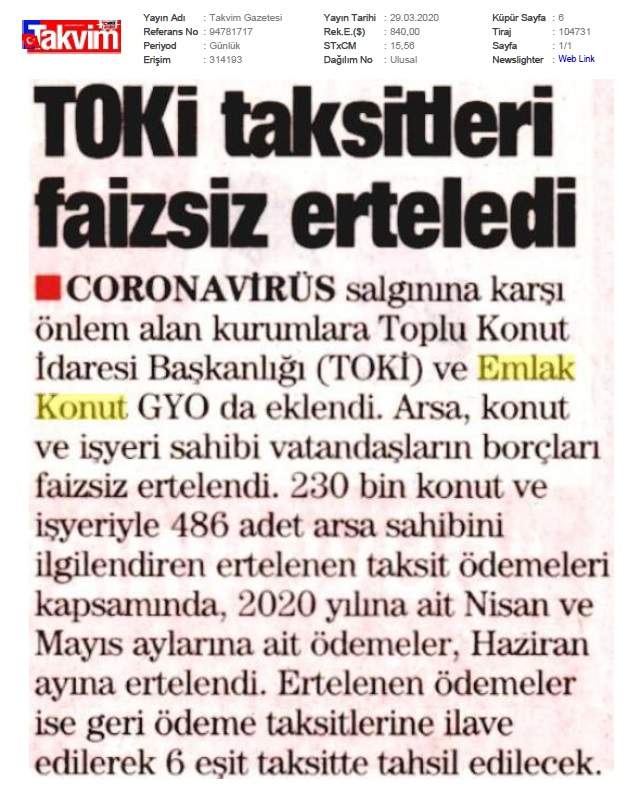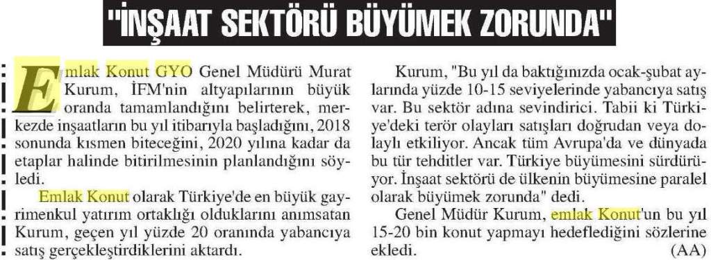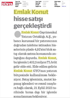Emlak Konut GYO açıkladı...