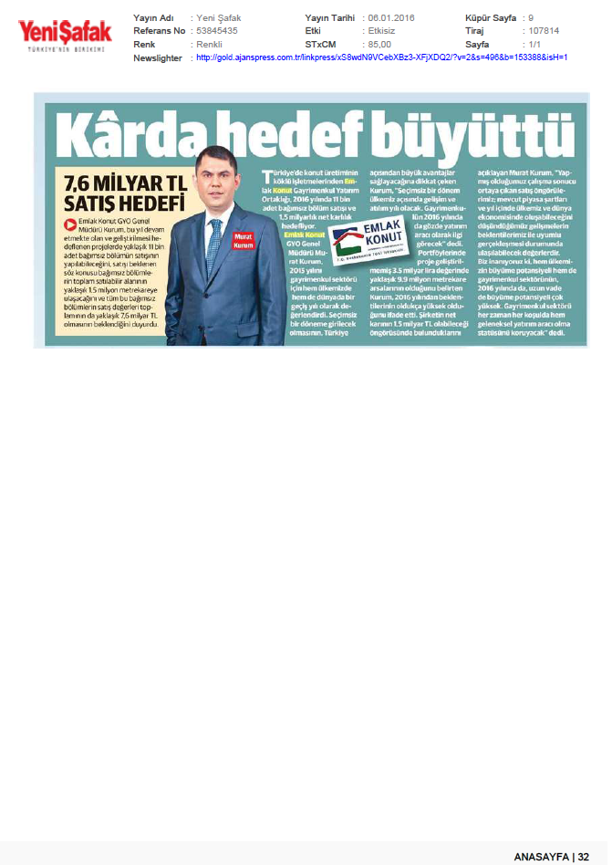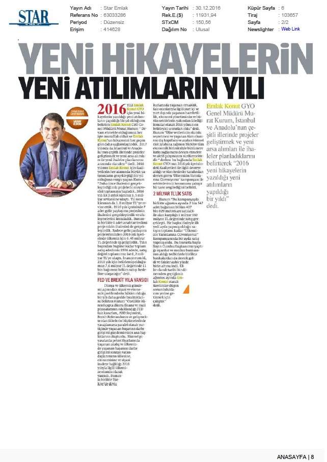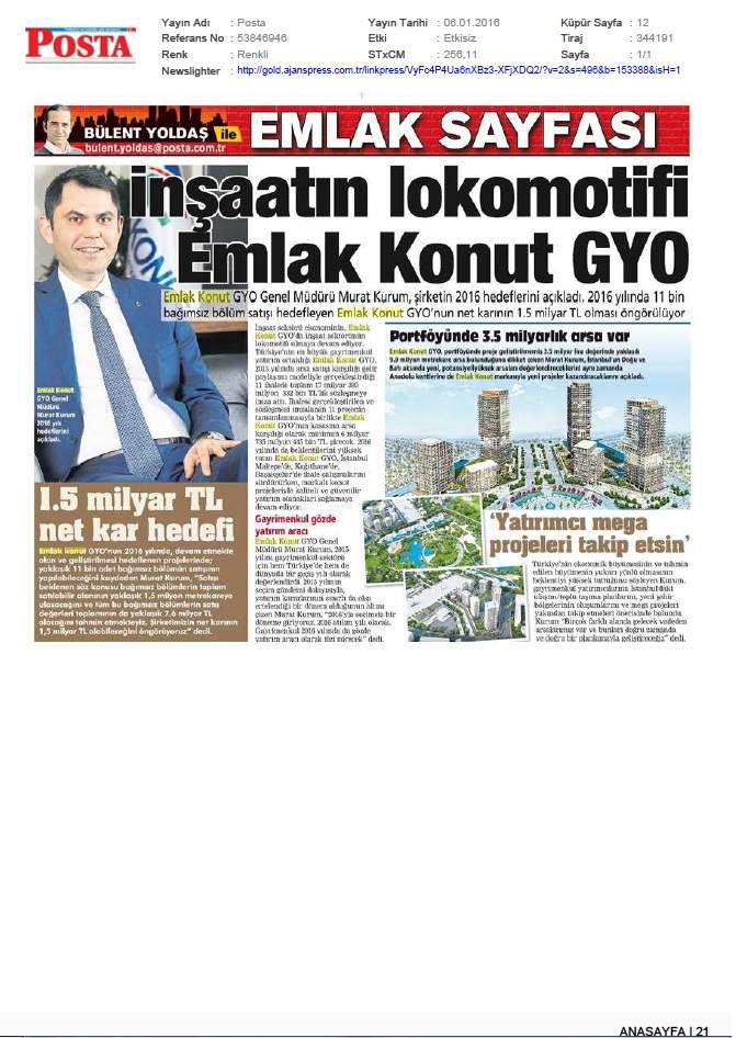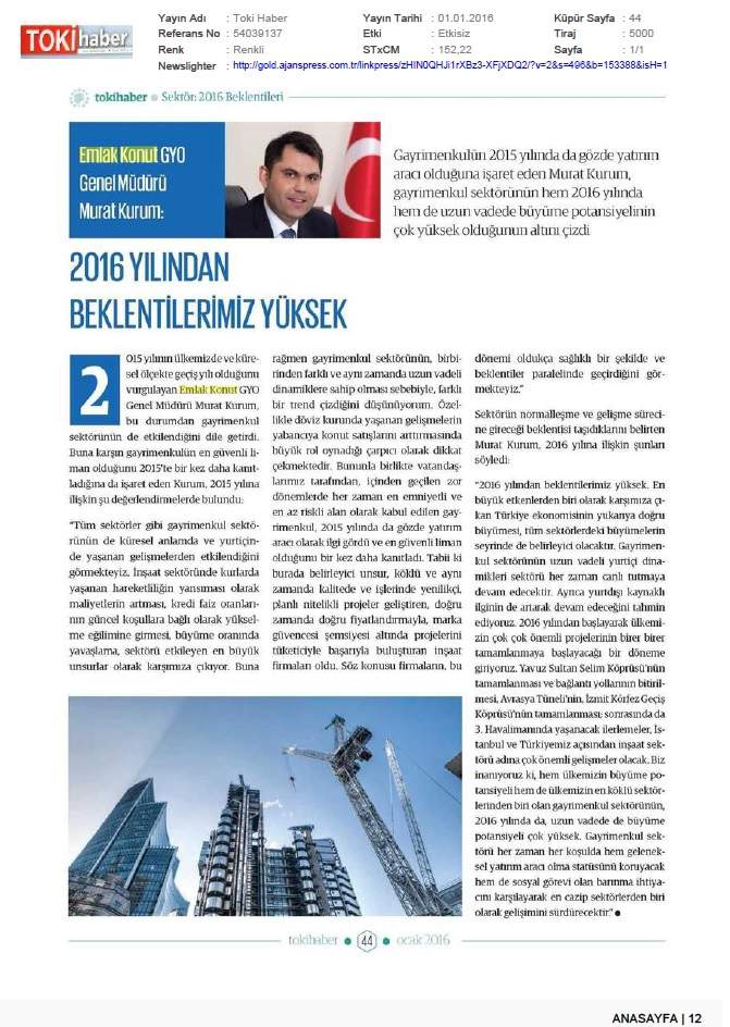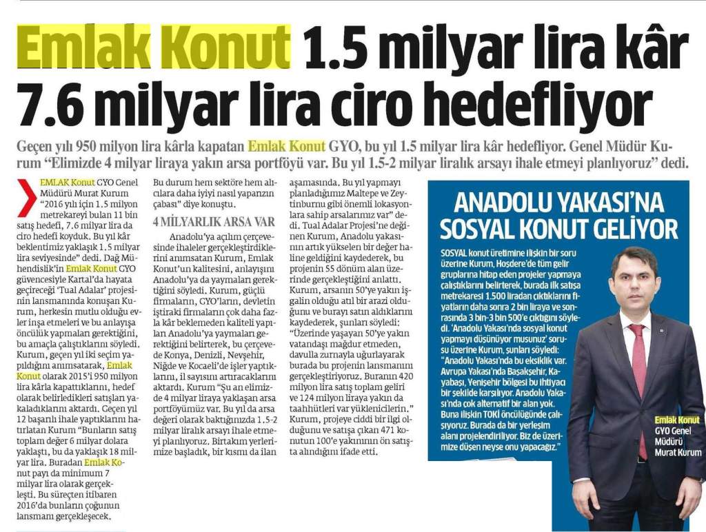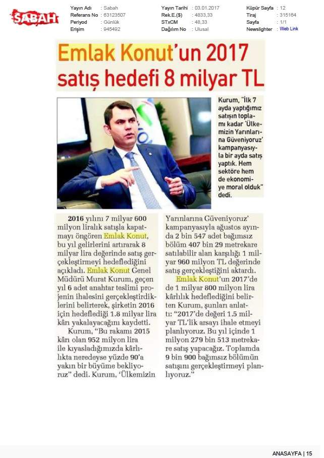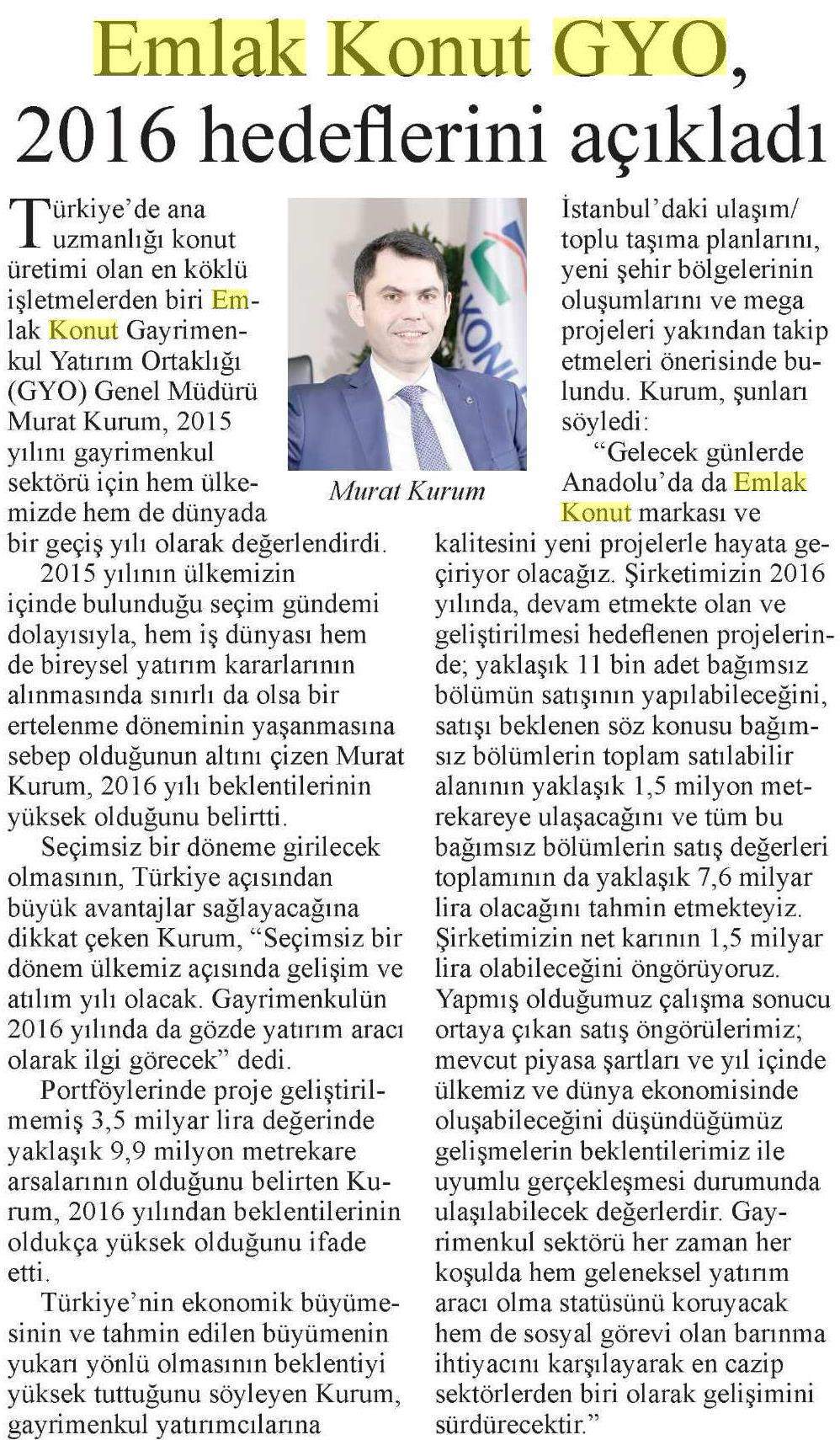 Emlak Konut, 2015'e Büyük Hedeflerle Girdi!