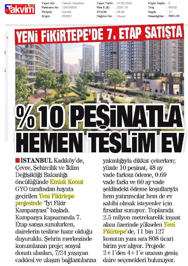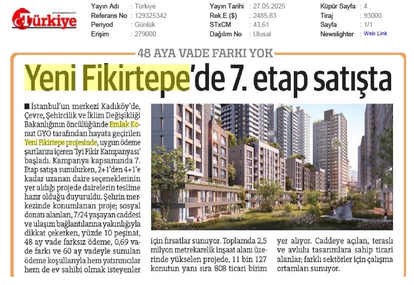 Emlak Konut GYO Yeni Fikirtepe 7.Etabı Satışa Sundu