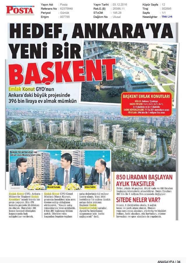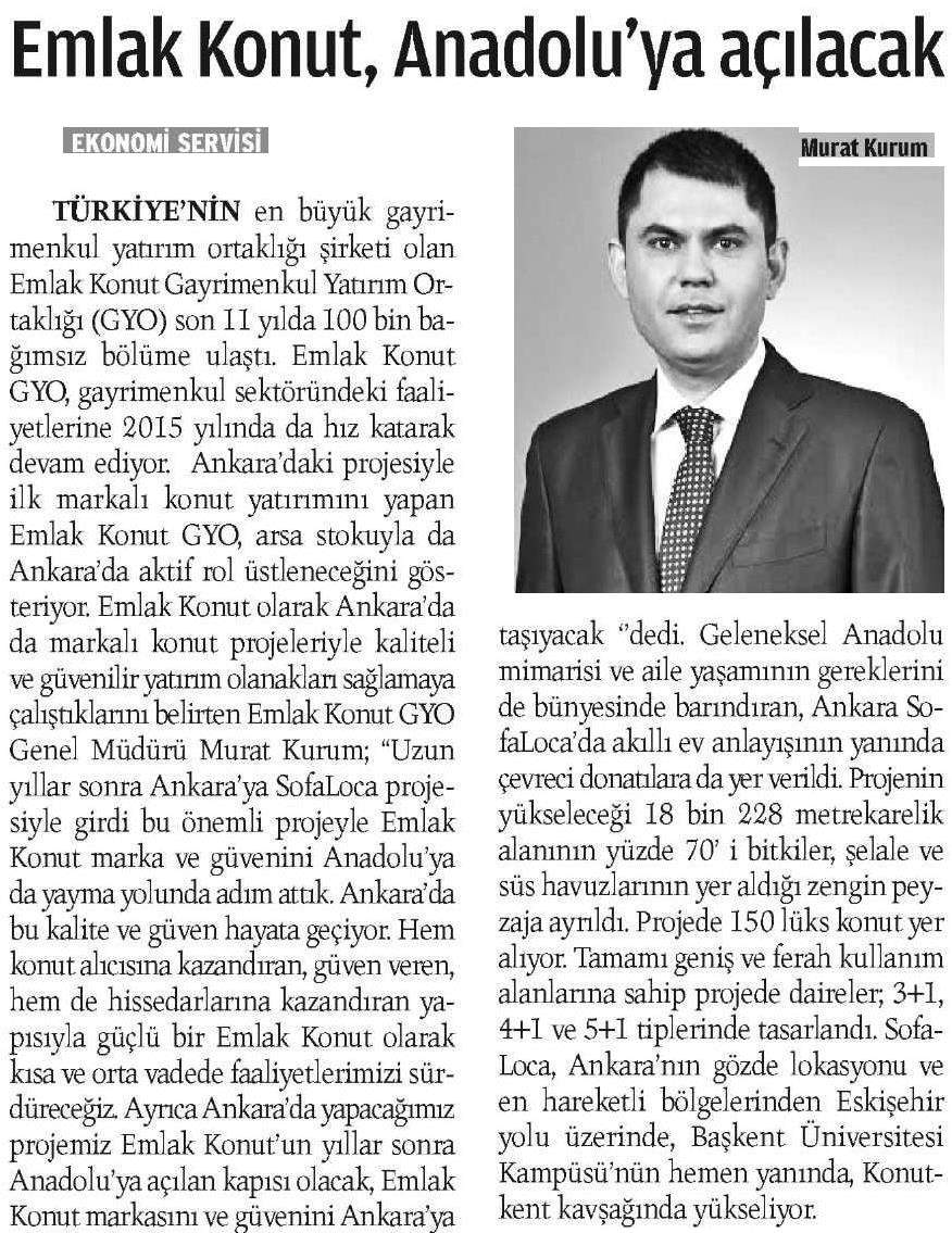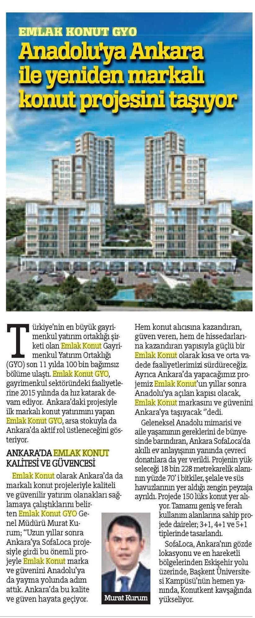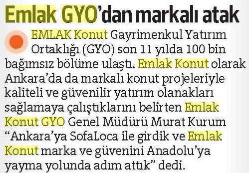 Emlak Konut GYO Ankara'dan Anadolu'ya açılıyor