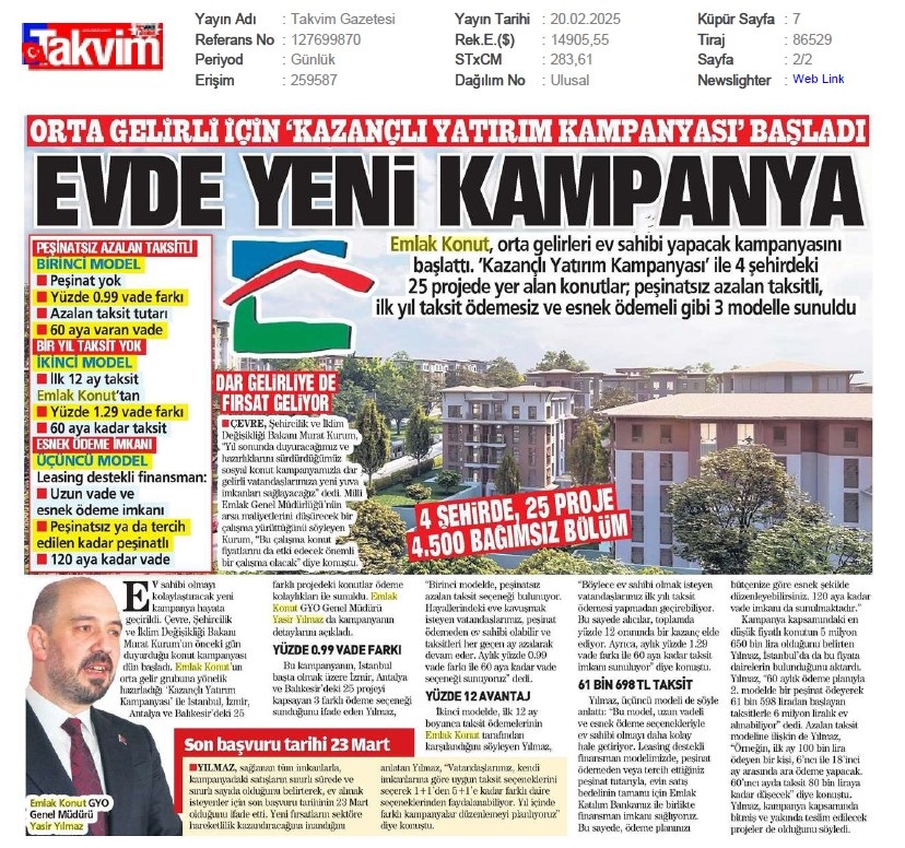 Emlak Konut 2025'e Güçlü Başladı