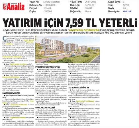 Gayrimenkul Sertifikasında Son Çağrı Bugün Süre Bitiyor