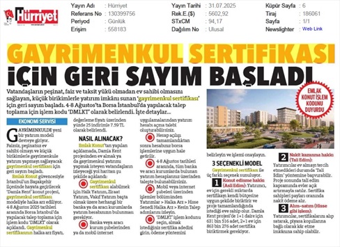 Gayrimenkul Sertifikası'nda Talep Toplama İçin Son Gün: Yarın