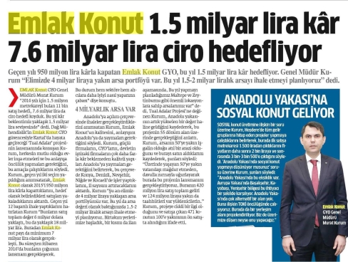 Emlak Konut 2015'te 6,7 milyar lira ciro hedefliyor