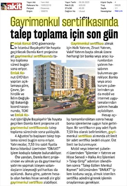 Gayrimenkul Sertifikasında Talep Toplama İçin Son Gün