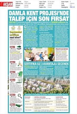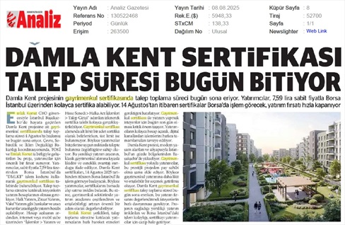 Damla Kent Sertifikası Talep Süresi Bugün Bitiyor