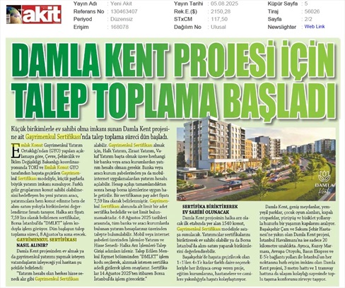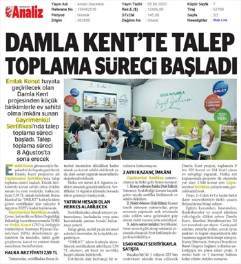 Damla Kent Projesi'nde Talep İçin Son Fırsat
