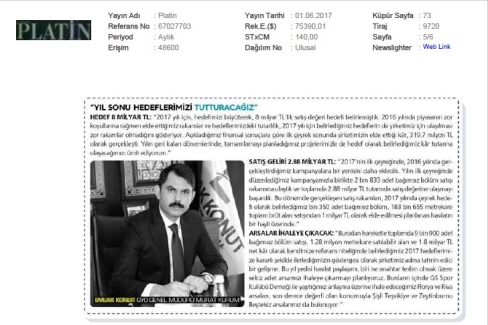 Hedef Ciro 6.7 Milyar TL