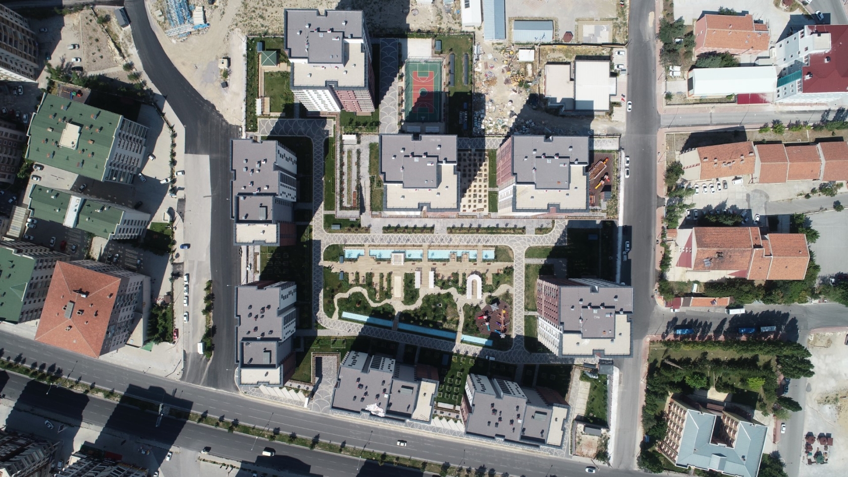 Niğde Konut Projesi’nde yapılar arsa geometrisi üzerinde, kent hizalarını devam ettirerek, arsa çeperleri üzerinde, birbirinin görüşünü kesintiye uğratmayacak şekilde konumlandırılmıştır. Bu yerleşkede yapılar duvarlar arasında yükselerek, kente değmeyen gettolar oluşturmaz. Atatürk Bulvarı’na cepheli yapıların bazalarında yer alan ticari alanlar zemini kentlinin kullanımına açar. Kamusal ve özel alan tanımının ustaca yapıldığı yerleşkede, konut blokları bulvar ve sokakla ilişkili cephelerinde kentle ilişki kurarken, bu çizgisinin gerisinde kalan geniş iç boşlukta –avluda- , peyzaj içinde, çeşitli sosyal ve sportif aktivite alanlarının yer aldığı, kendi sakin ve mahrem yaşantısını kurgular. Arsa eğiminden yararlanarak konumlandırılan sosyal tesis, yerleşkenin iki kotunu birbirine bağlarken, tüm yerleşkenin sosyal, sportif ihtiyaçlarını karşılamayı, bir ortak aktivite alanı ve buluşma noktası olmayı hedefler. Sosyal tesis bünyesinde kapalı havuz, fitness ve kafe yer alır.