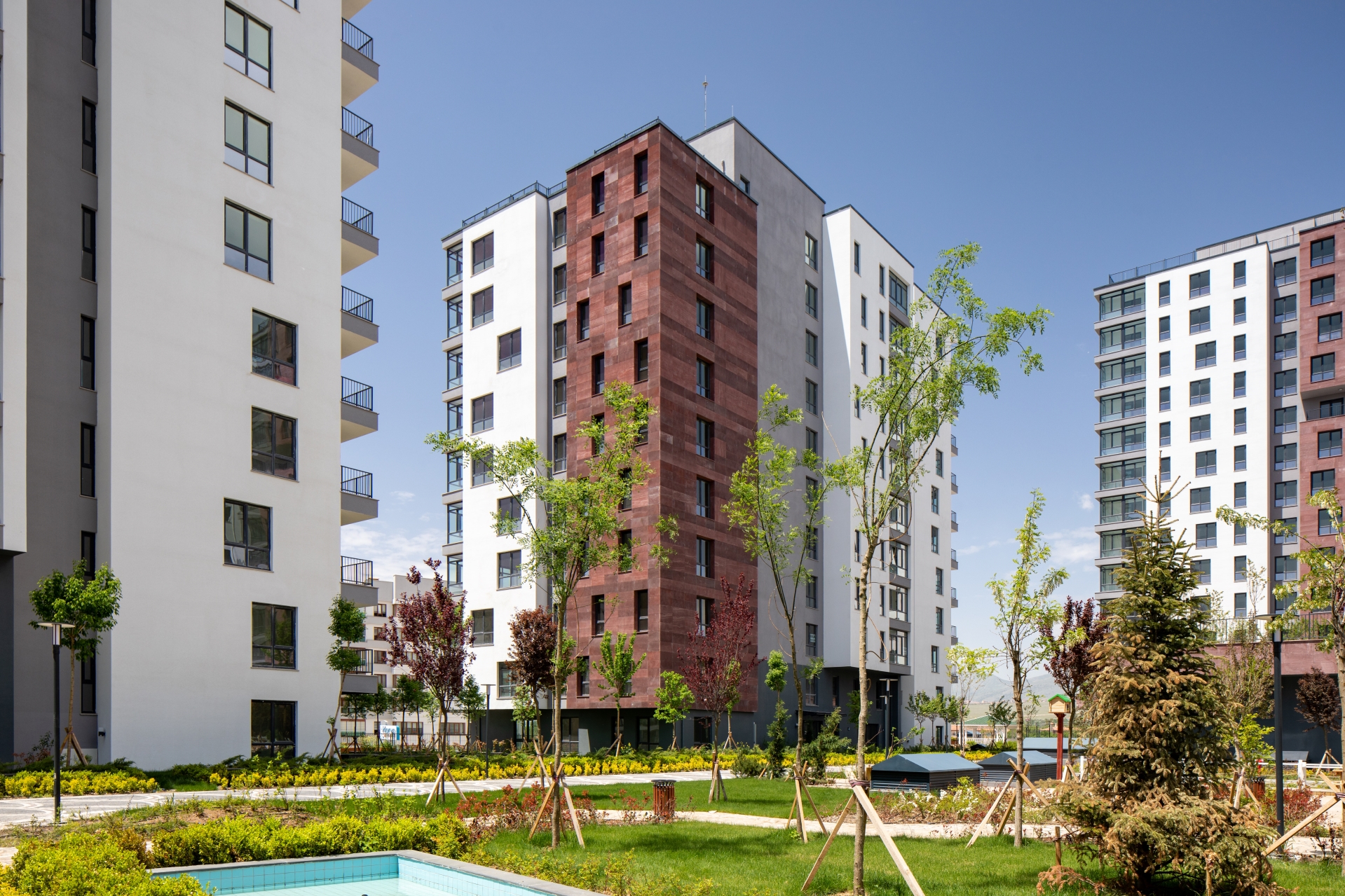 Parsel alanın %70’i yeşil alan ve bitkisel peyzaj olarak tasarlandı.