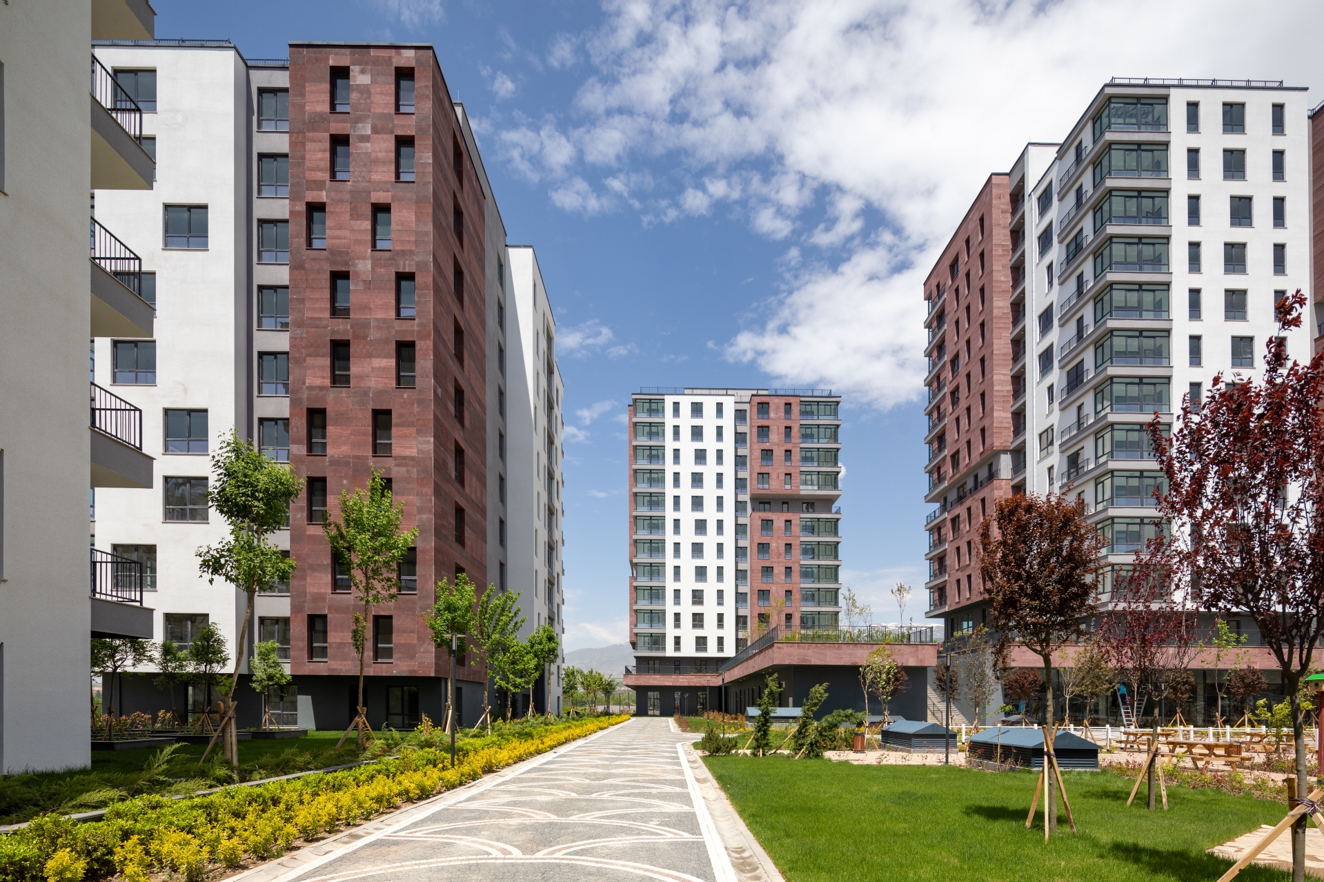Yapıların vaziyet planı çizgisi üzerindeki konumlanışı ve kütlesel parçalanışları, kullanılan malzemelerle farklılaşmaları yapıların çevre yaklaşımındaki algısını çeşitlendirmekte ve konut sahiplerinin aidiyet duygularını perçinleyecek onlara kendi özel ve güzel evlerini vermektedir. Farklı m2 ler ve plan çözümlerinde 2+1, 3+1, 4+1 tasarlanmış konut alanları, kullanıcıları için seçenekler ortaya koymaktadır. Proje kapsamında açık ve kapalı otopark yer almaktadır.