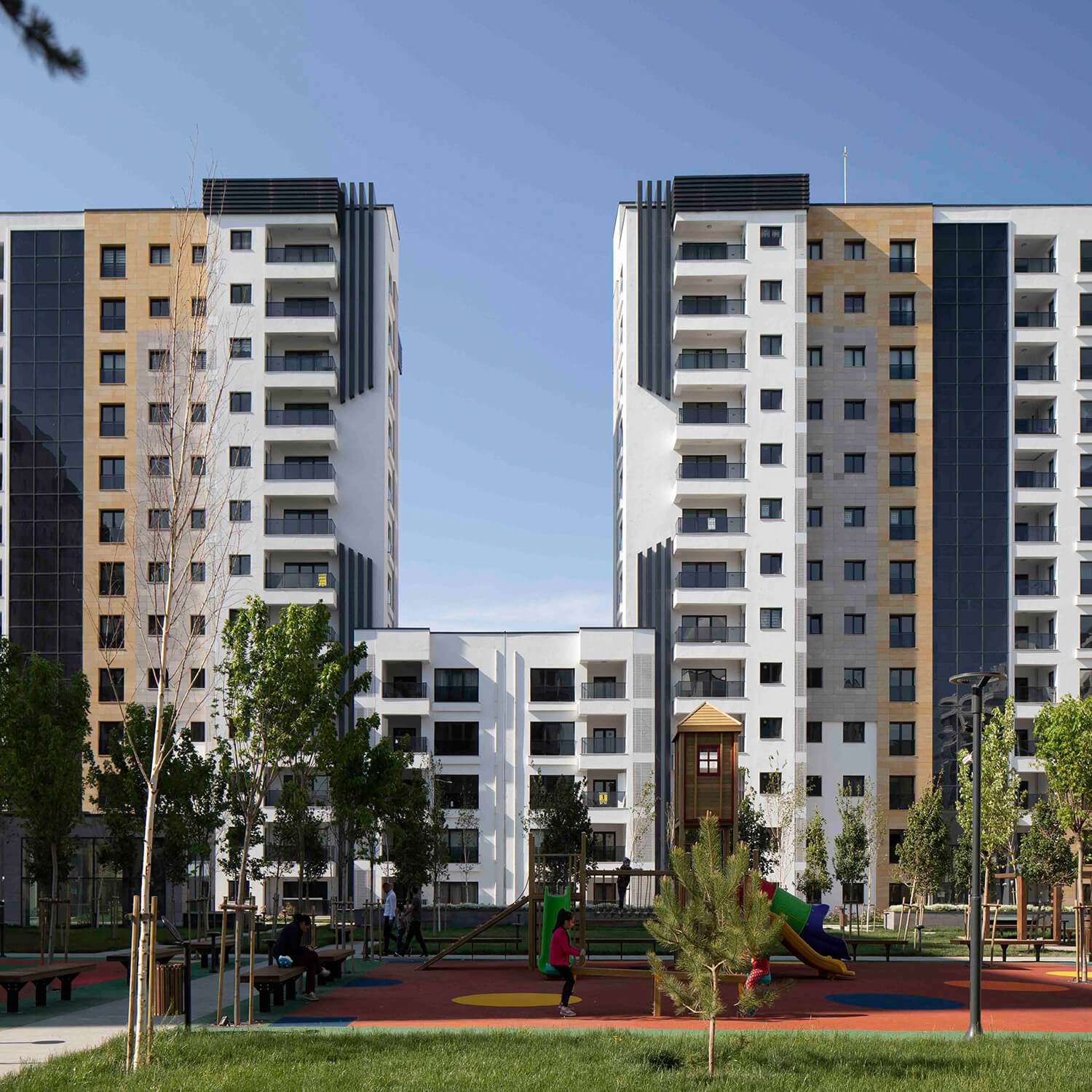 - A feel of brightness and commodiousness has been added to the buildings with laminated, tempered glass walls selected for safety of the residents.