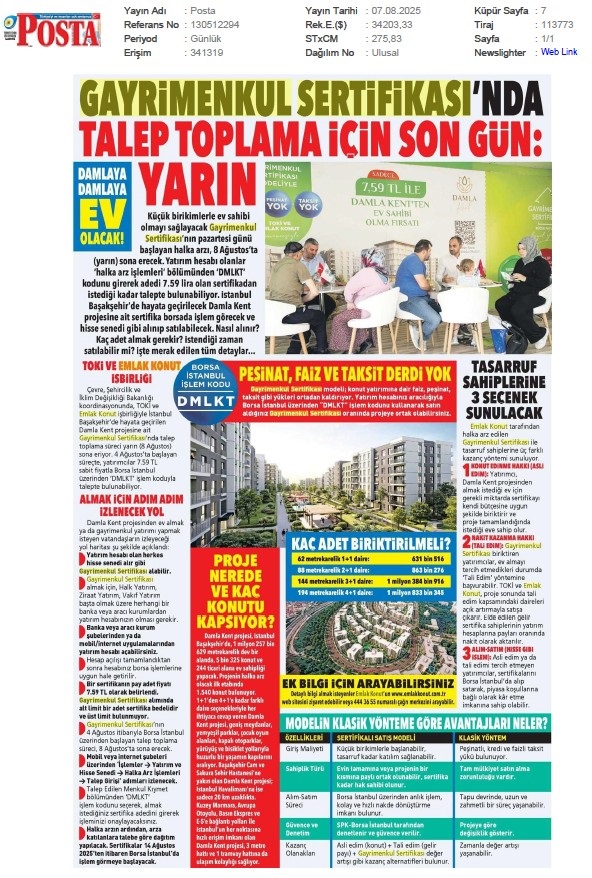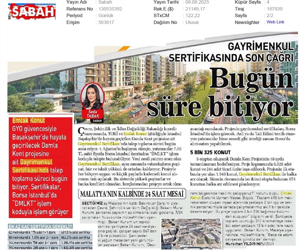 Gayrimenkul Sertifikasında Son Çağrı Bugün Süre Bitiyor