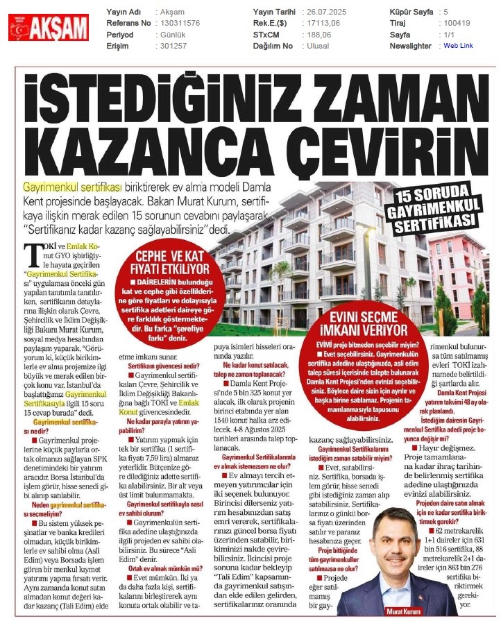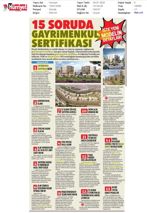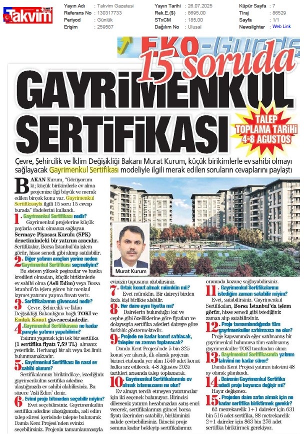 Gayrimenkul Sertifikası'nda Talep Toplama İçin Son Gün: Yarın