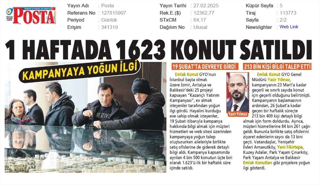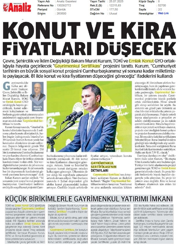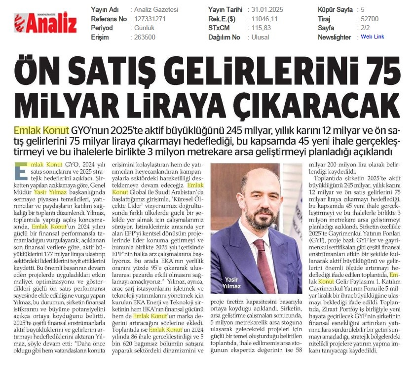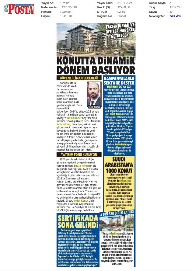 Emlak Konut 2025'e Güçlü Başladı
