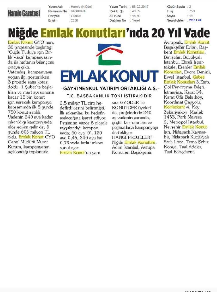 Basında Emlak Konut