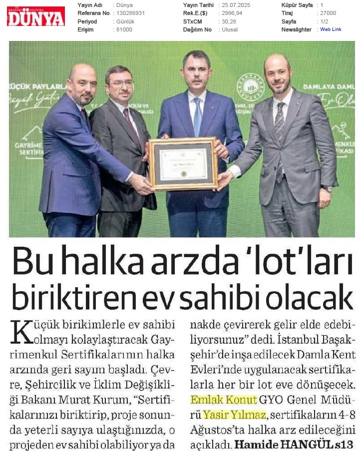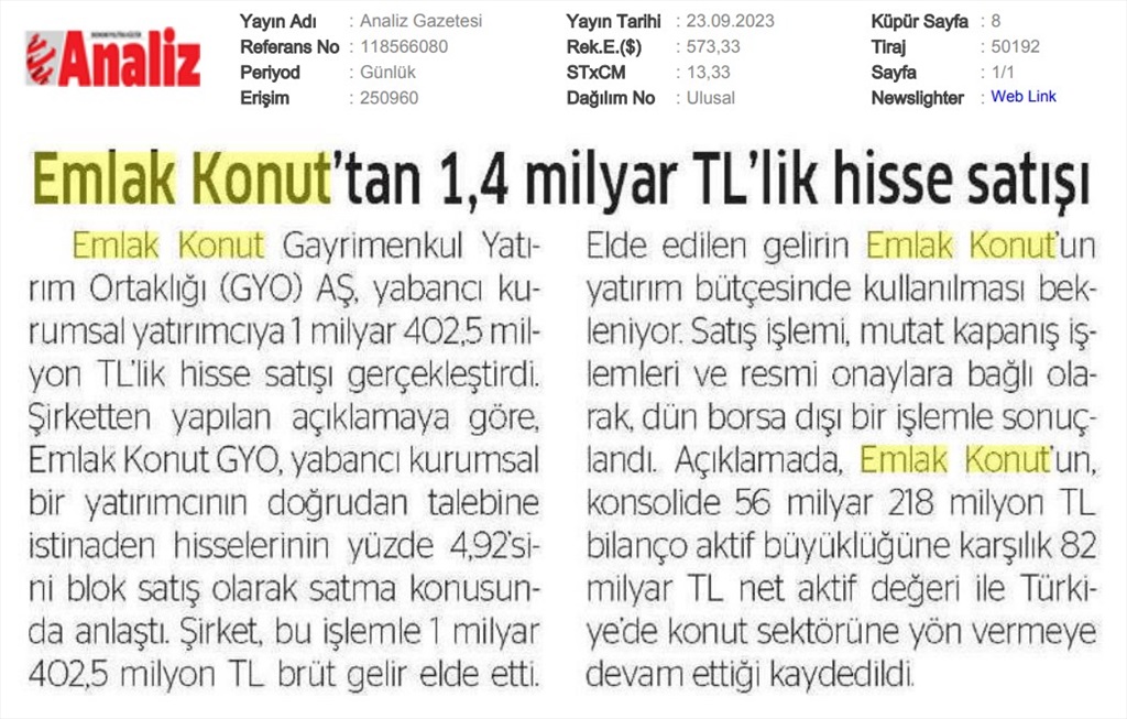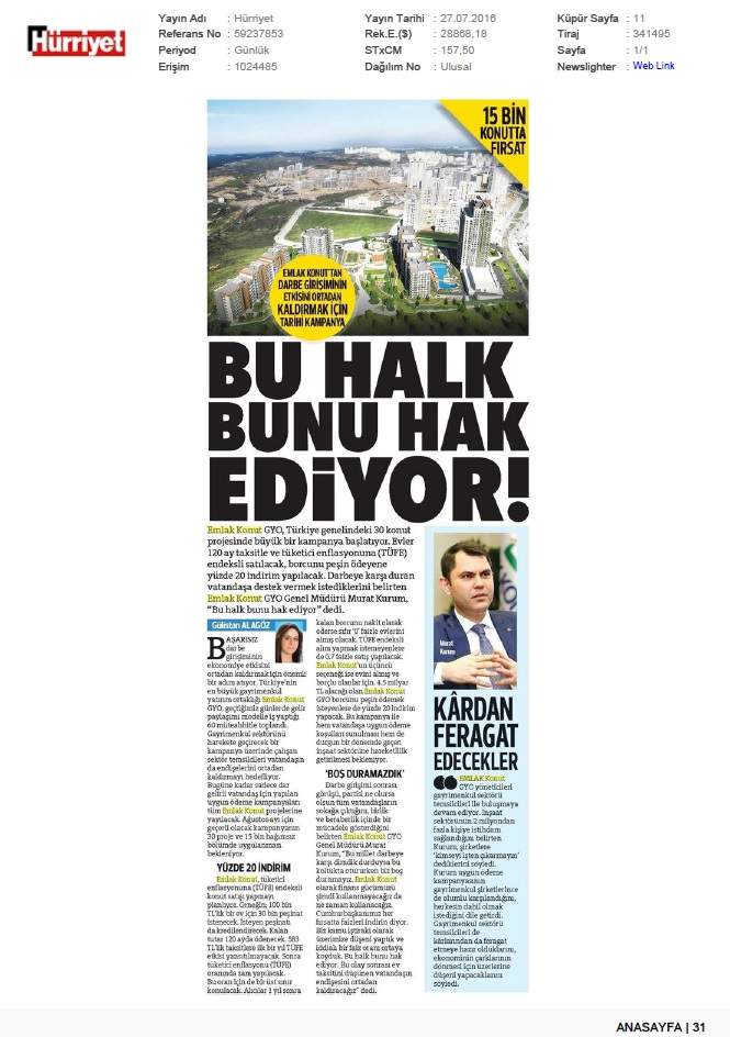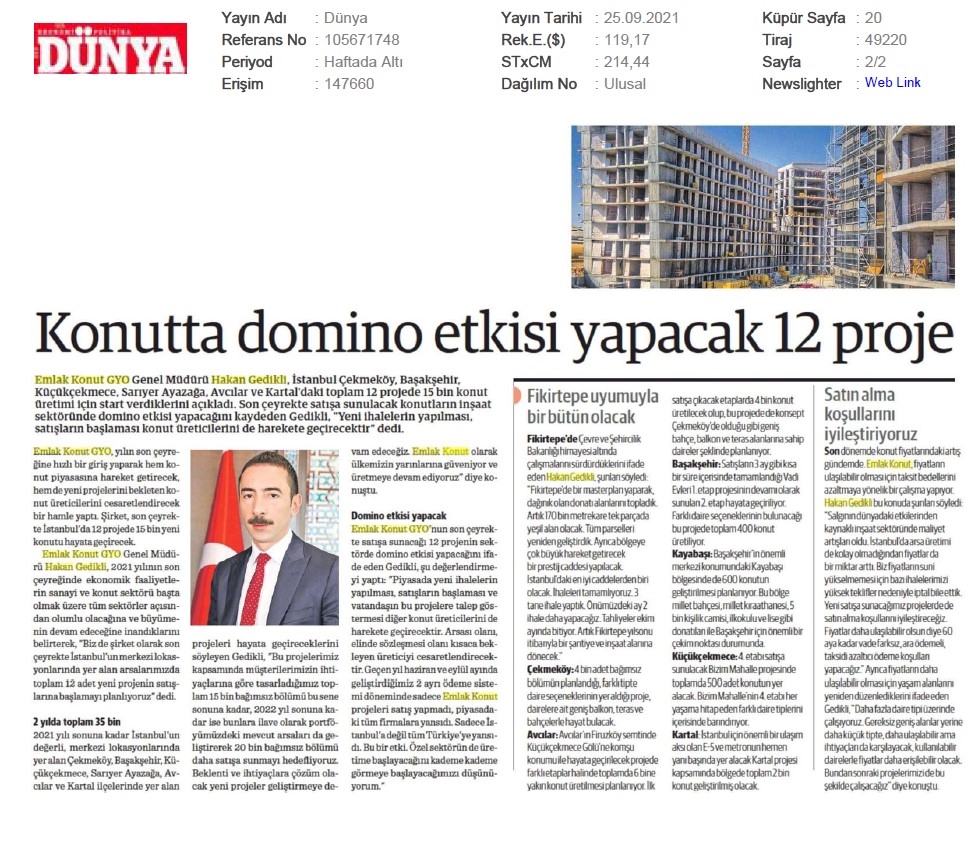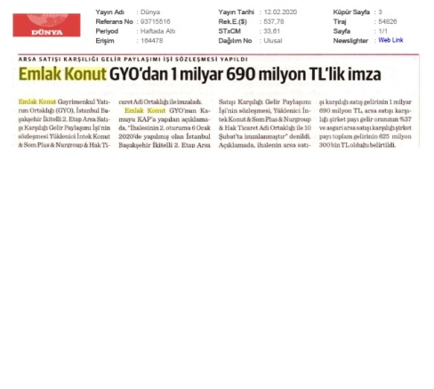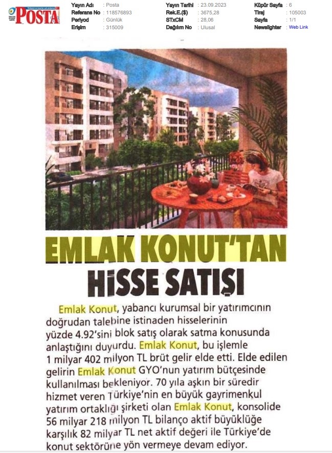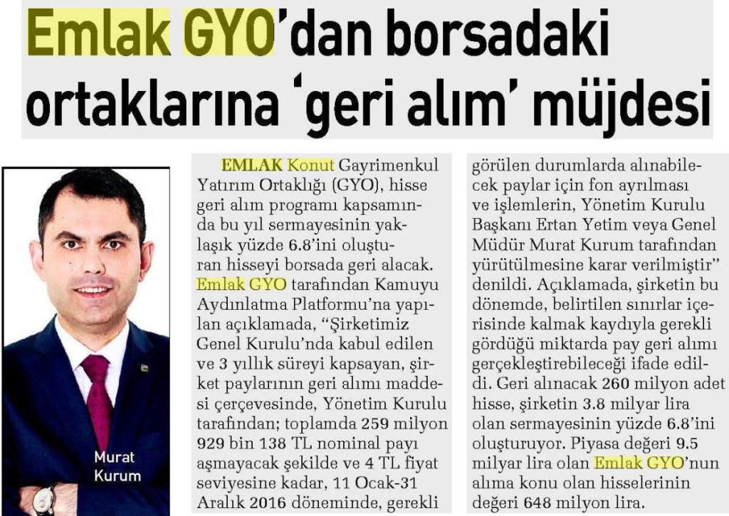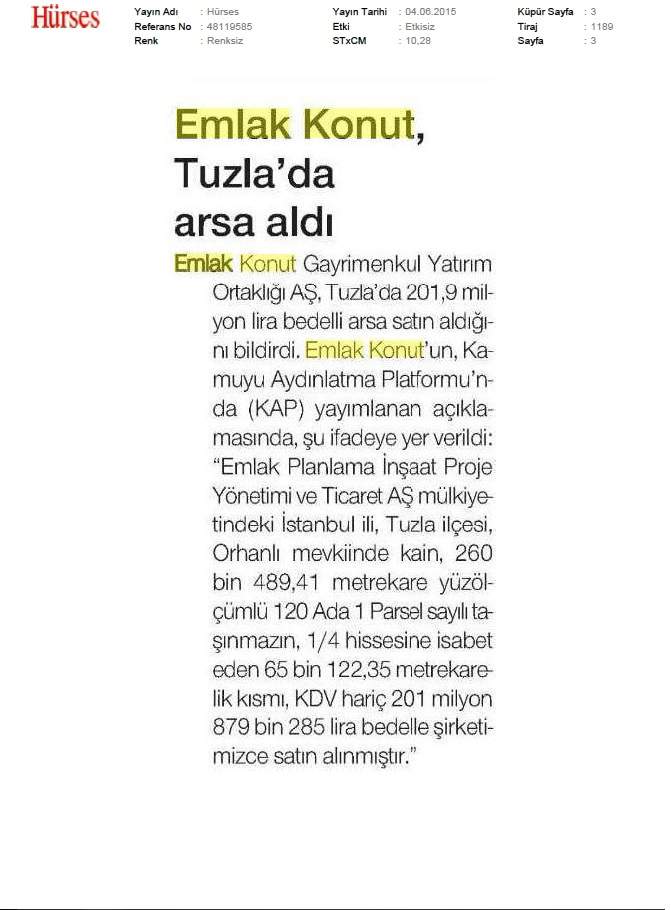Emlak Konut GYO açıkladı...