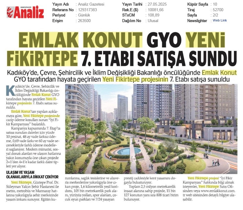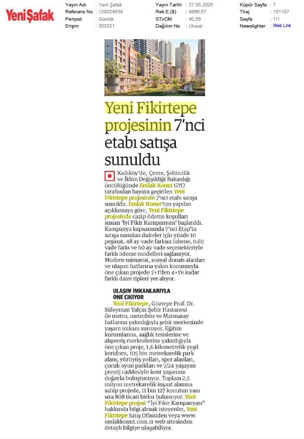 Emlak Konut GYO Yeni Fikirtepe 7.Etabı Satışa Sundu