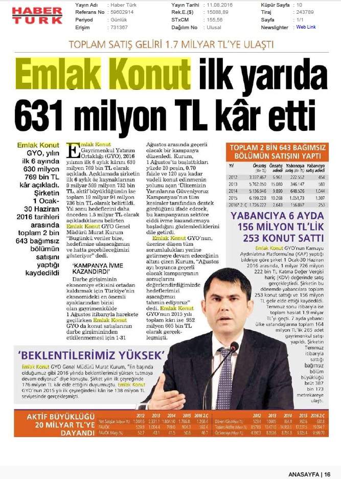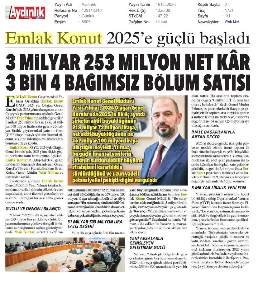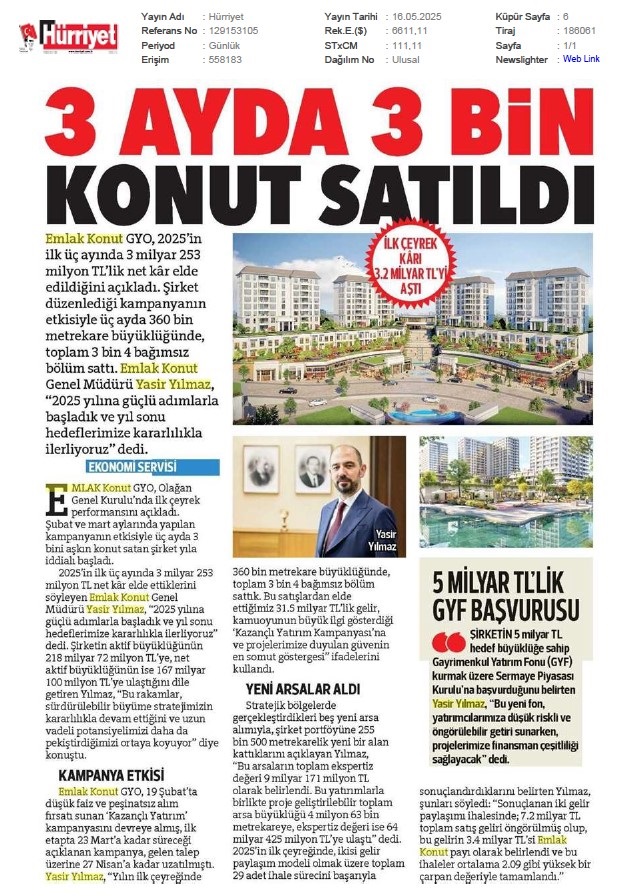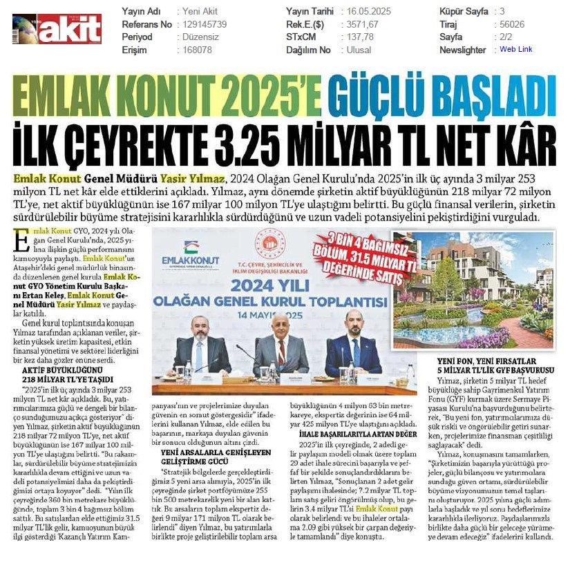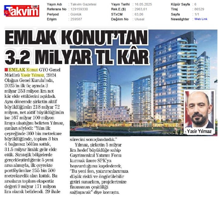 Emlak Konut'tan 3.253 milyar TL net kar