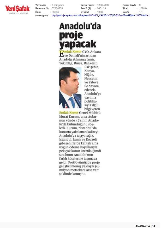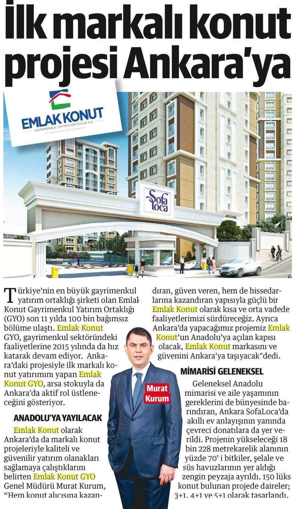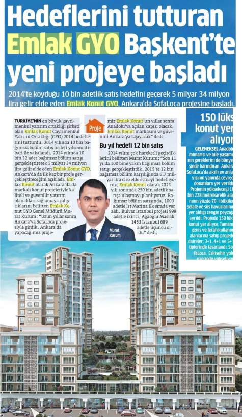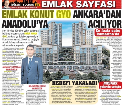 Emlak Konut GYO Ankara'dan Anadolu'ya açılıyor