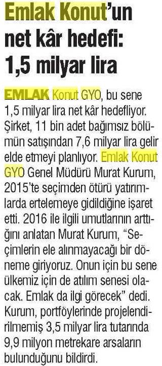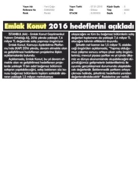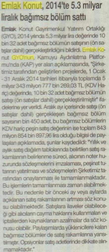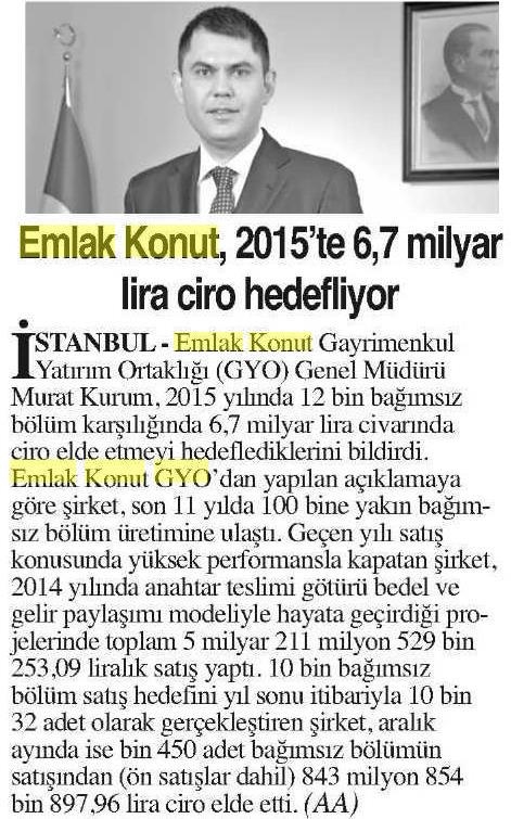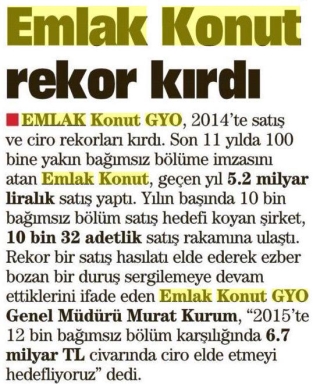 Emlak Konut, 2015'e Büyük Hedeflerle Girdi!