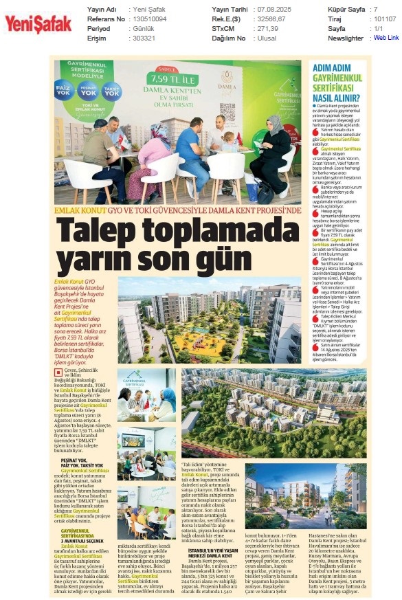 Damla Kent Projesi'nde Talep İçin Son Fırsat