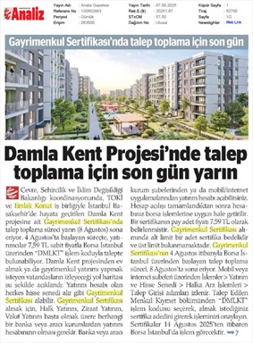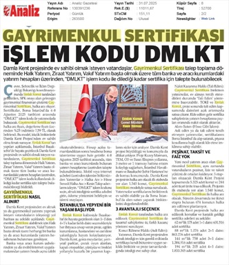 Damla Kent Sertifikası Talep Süresi Bugün Bitiyor
