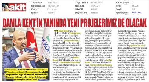 Damla Kent Bugün Borsada
