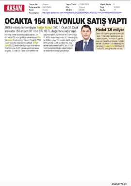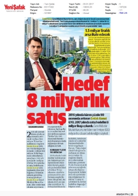 Yeni yıl hedefi 6.7 milyar lira