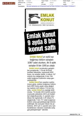 Emlak Konut 2014 hedefini tutturdu