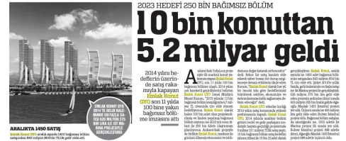 Emlak Konut,2014'te 5.3 milyar liralık bağımsız bölüm sattı