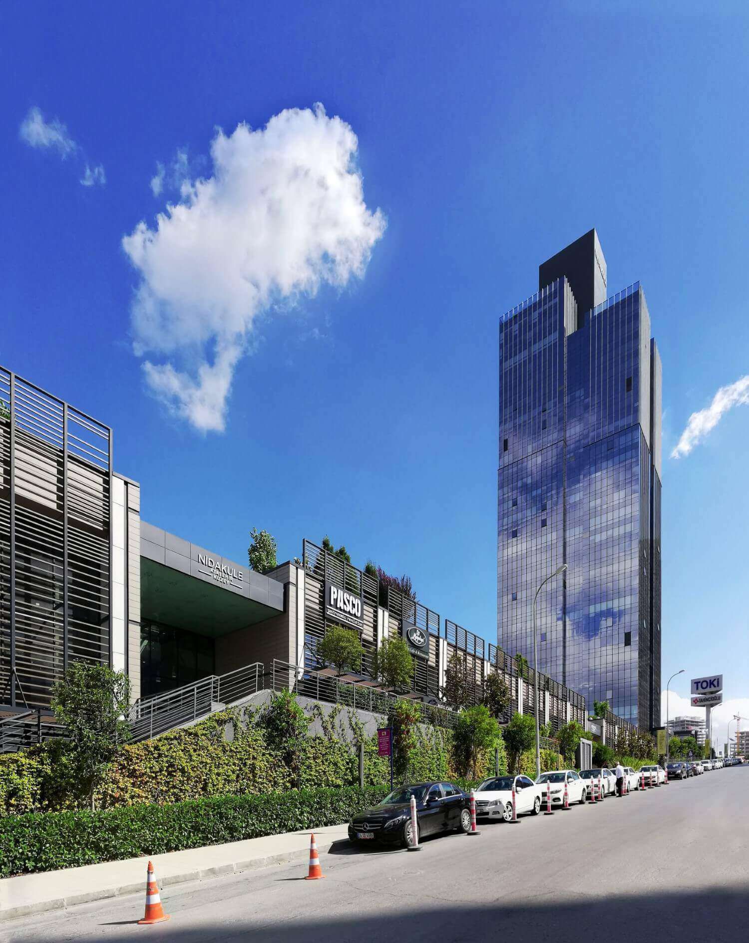 Nidakule Ataşehir, hem dikey hem de yatay mimarisiyle iş dünyasının yıldızlarına hem dikey hem de yatay çalışma alanları sunuyor, farklı iş kollarının ihtiyaçlarını rahatlıkla karşılıyor.